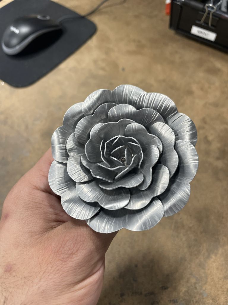 A Metal Bouquet / Art, Featured Stories, Metal Working / By Mike / January 22, 2026 One of our members used the tools in our Metalshop to make a small bouquet of flowers out of metal.
